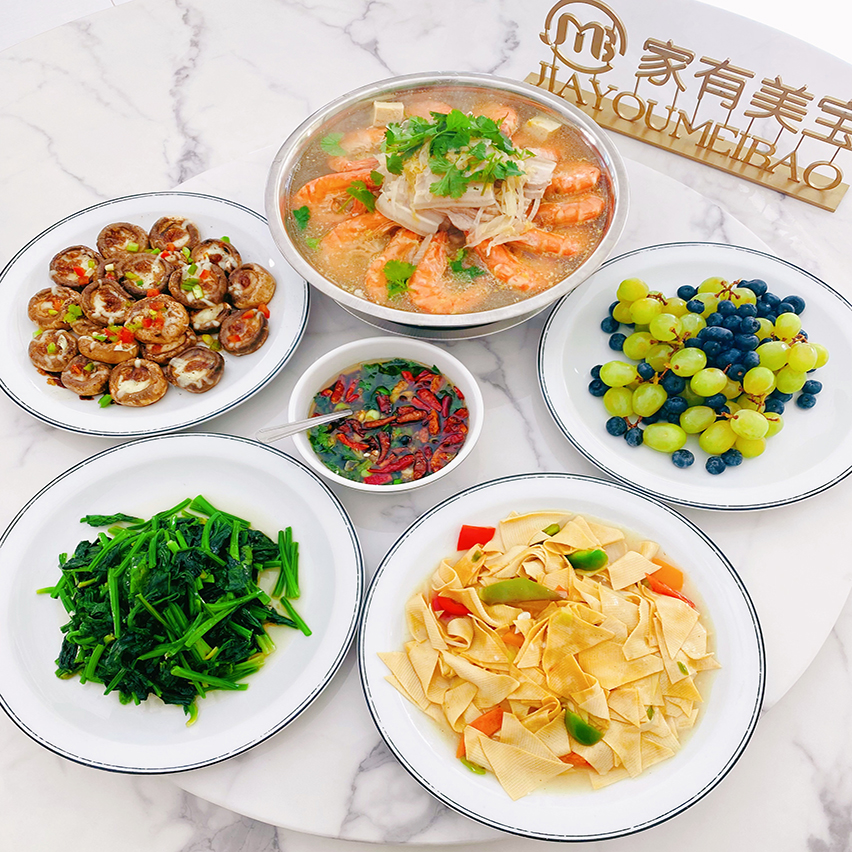 保证肉类、时令蔬菜、多种水果、新鲜采购